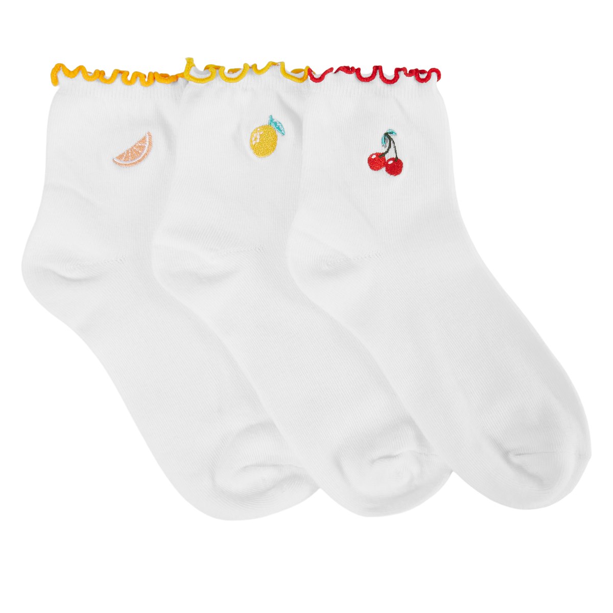 Chaussettes à fruits brodés et volants blanches