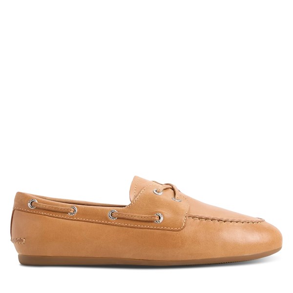 Women's Slim Boat Leather Shoes in Tan