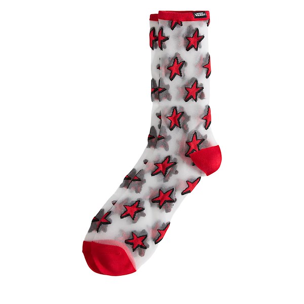 Hazy Sheer Crew Socks in Red/Black