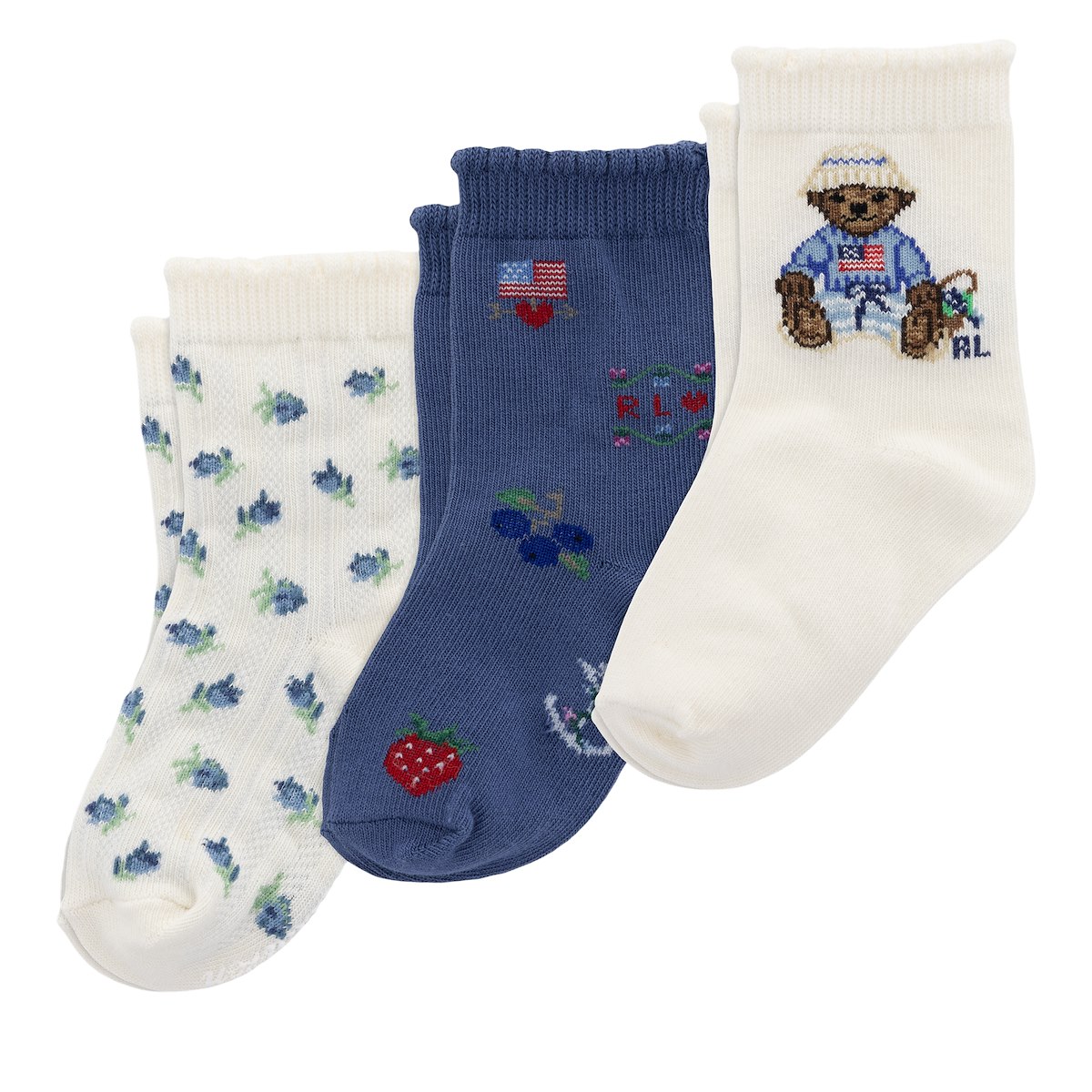 Baby 3-Pack Blueberry Bear Socks in Ivory/ Blue/White