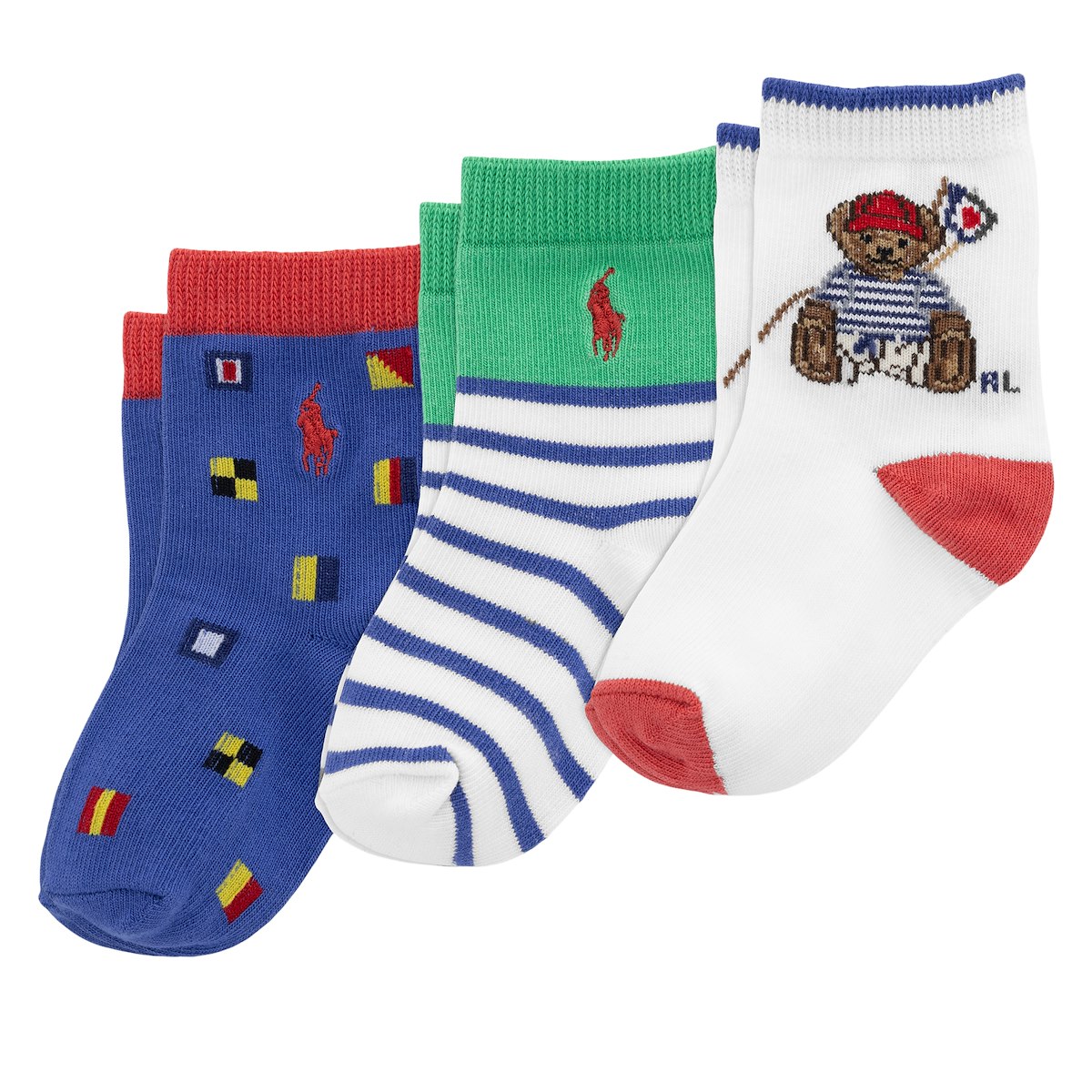 Baby 3-Pack Sailing Bear Socks in Ivory/ Blue/White