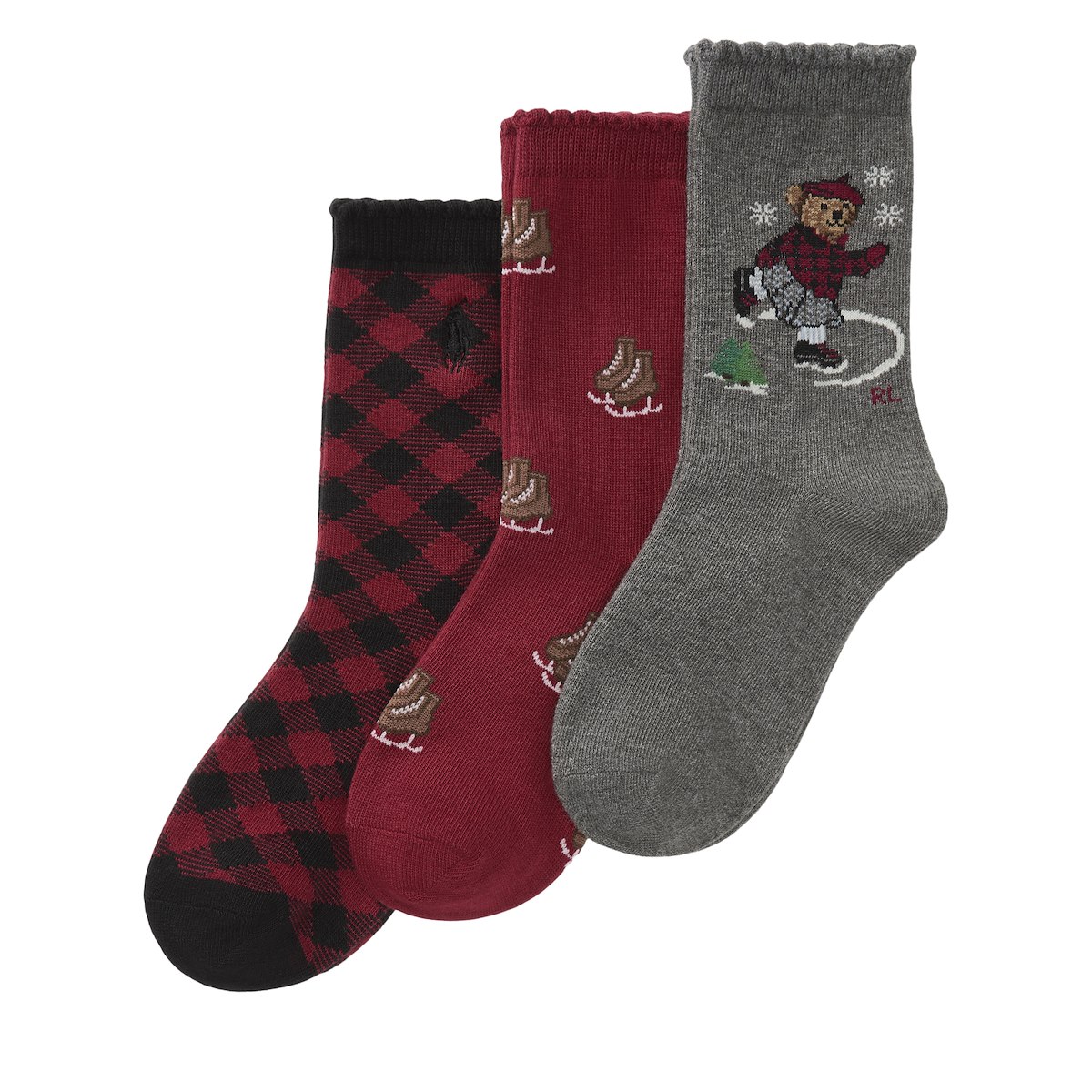 Kid's 3-Pack Skating Bear Crew Socks in Red/Black/Grey