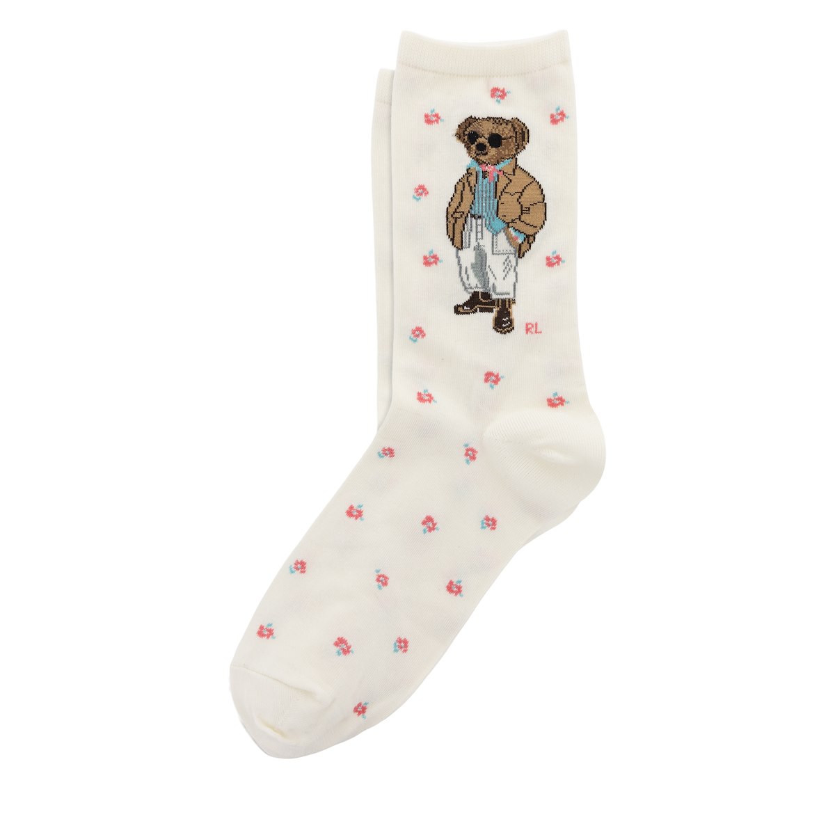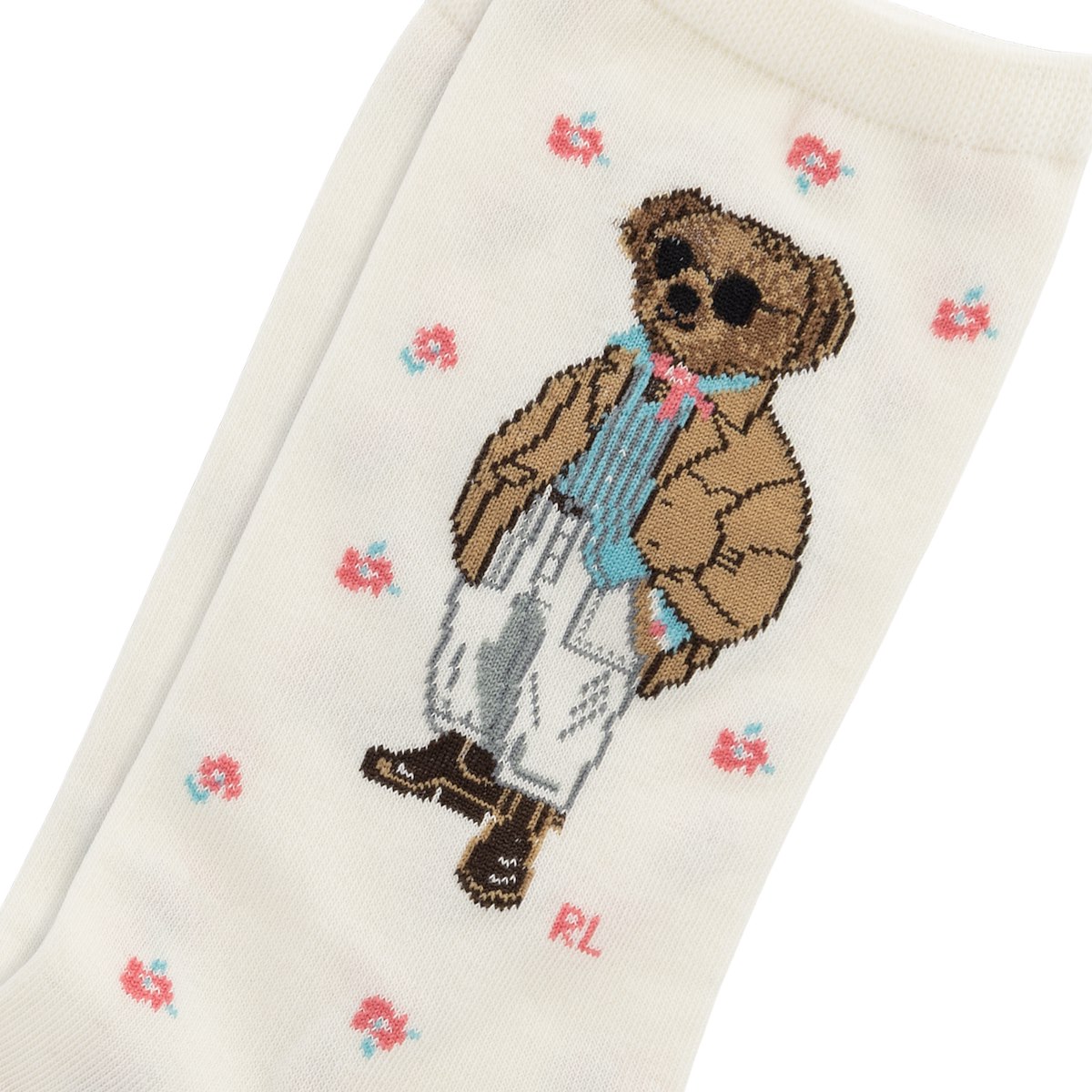 Spring Bear Crew Socks in Ivory/Pink